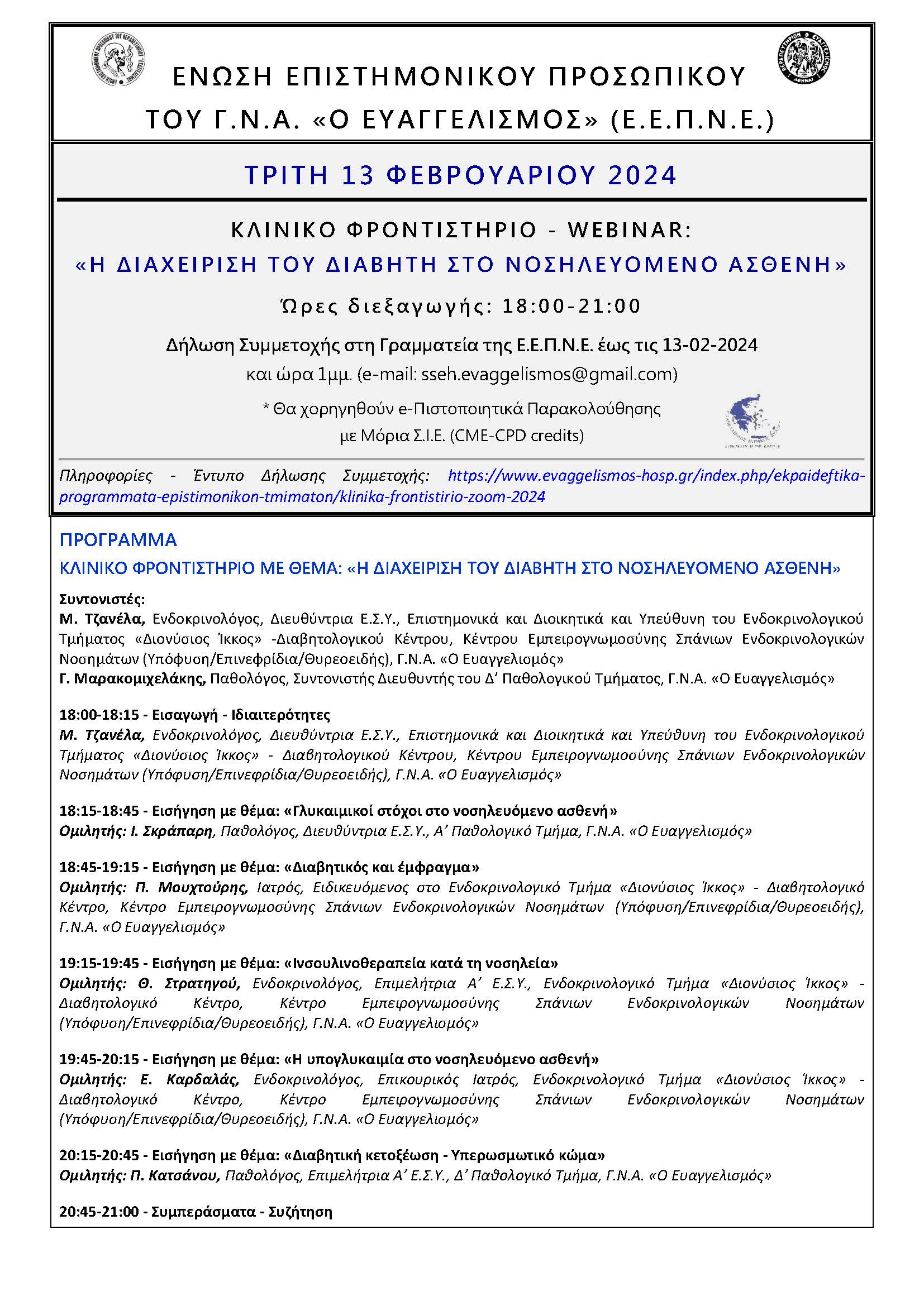 ΤΡΙΤΗ 13 ΦΕΒΡΟΥΑΡΙΟΥ 2024 - Ώρα έναρξης 18:00 μέσω zoοm